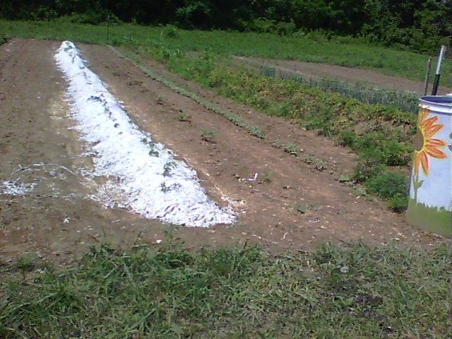 During class, Cody told us to plant the slips in a hills and mulch with straw. Here is my version, to mulch with paper. The sweet potato plants are doing very well.