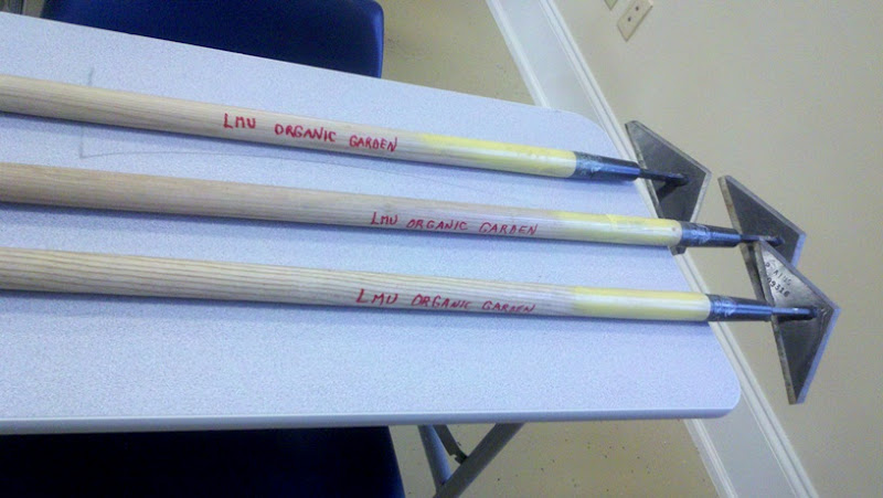Here is an update from the LMU garden. Lots of work going, weeding, and planting in the members beds. Also planted, corn, beans in the community garden and have filled up more beds with dirt. Have transplanted alot of our plants that were grew in the green house and we are loving our new scuffle hoes.