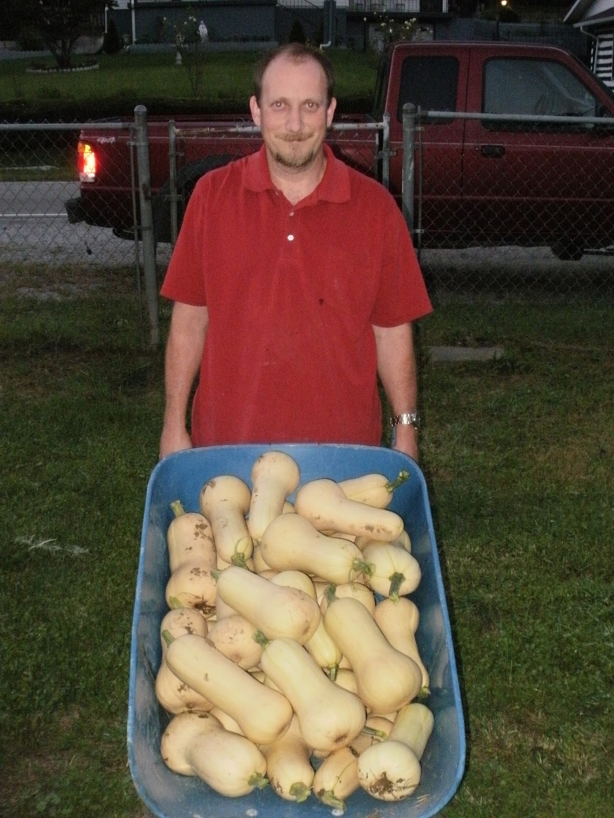 | Chris Hockenberry with one of his many wheelbarrow loads of Butternut! |