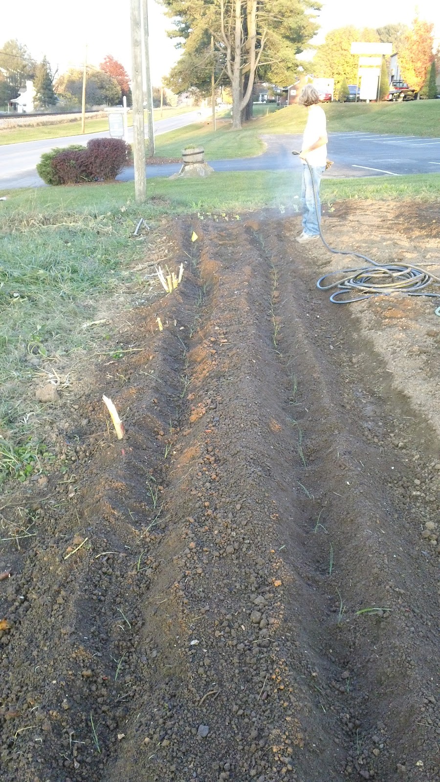 I tilled up more of the garden and we seeded Austrian Winter Peas, and planted leeks, shallots, and lettuce. We will put bales of straw around the lettuce and prop a window on top for a makeshift coldframe.