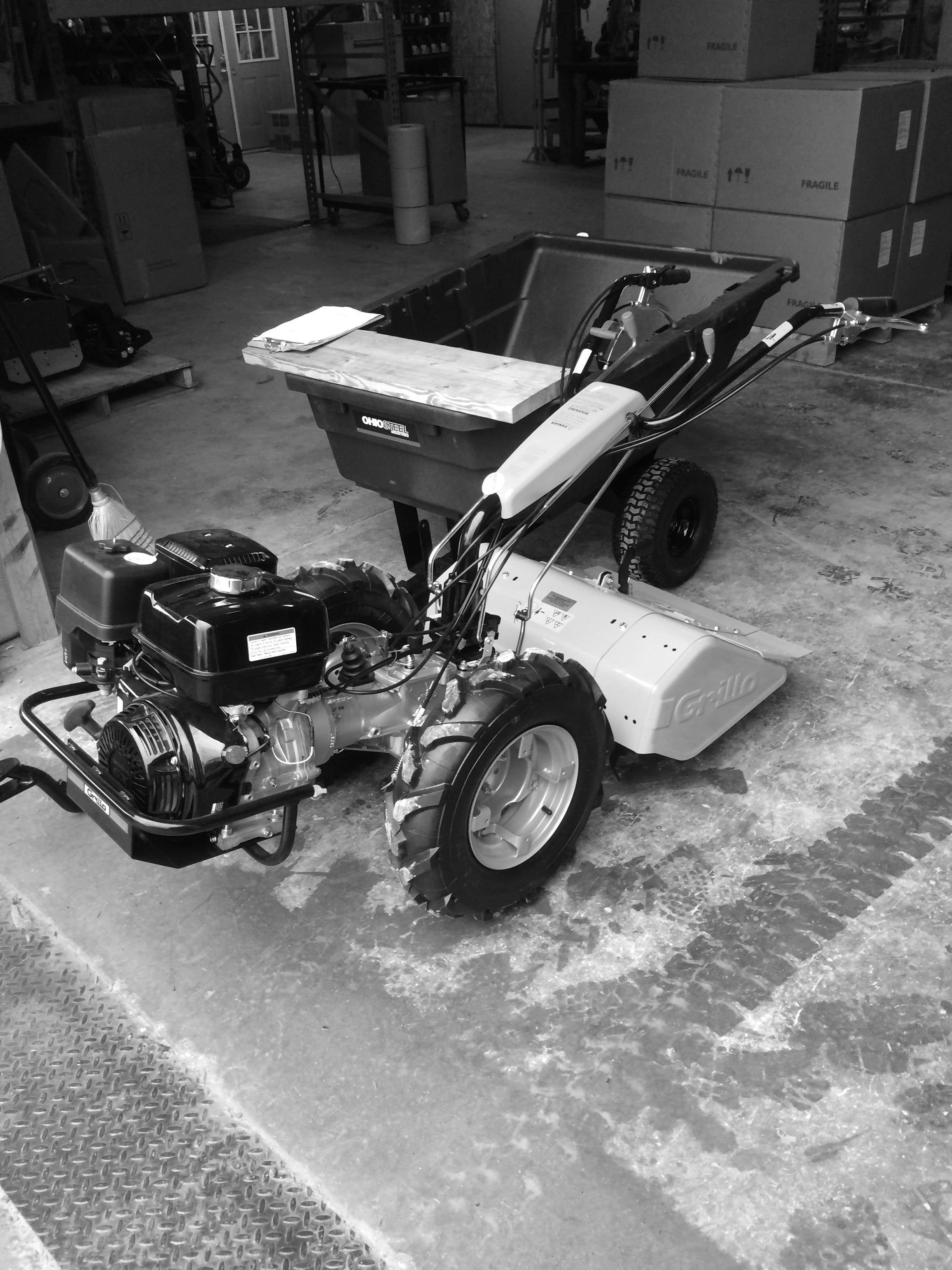 Things are really beginning to green up here in the mountains of Pike County. The dogwoods are blooming and the Easter lilies are decorating the landscape with patches of yellow. Last week we began breaking ground and tilled our garden here at Ashcamp. We have a guy coming to plow our other garden at Lookout sometime this week hopefully, so we can begin to get things in motion up there. On Thursday morning we made the trip to Earth Tools in Owenton, Ky and picked up the grillo! The people there were very nice and Gabe give us a detailed demonstration on how to operate our new Grillo tractor. Saturday morning we attended the Seed Swap at the Pike County Extension Office, where local farmers and gardeners from the Appalachia region were selling and trading heirloom seeds. All of our broccoli, cabbage, and Brussel sprouts are coming up good and were transplanted earlier this week. This morning we planted 60 trays of tomatoes in the greenhouse , along with several different varieties of peppers. Hopefully the temperature and weather works to our favor in the coming week and we can start getting some of them in the ground soon
