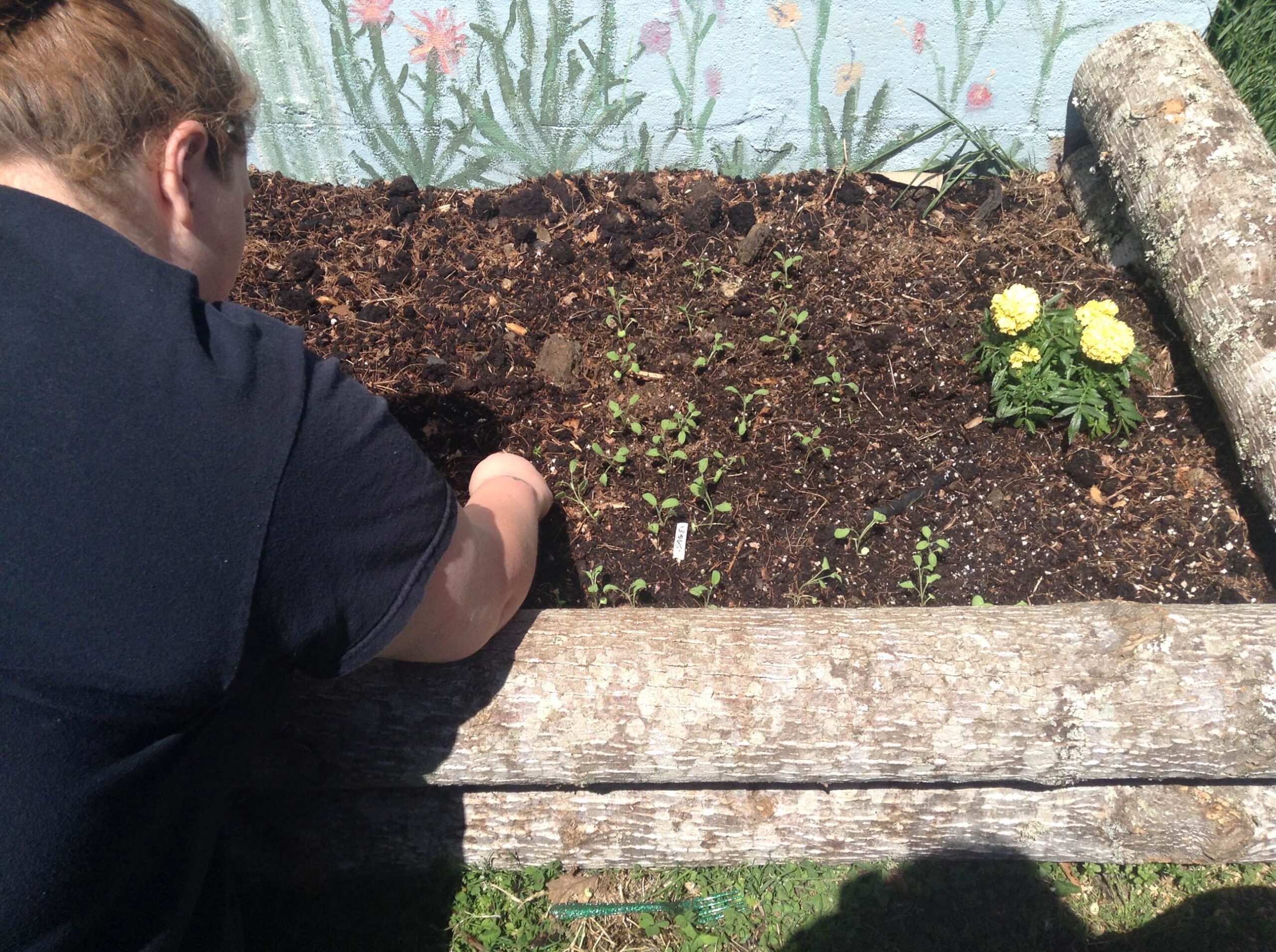 Last year was our first attempt to grow herbs. We selected basil and grew lots of it not only for our gardeners but we were able to sell some to help with our greenhouse project. This year we’ve expanded our community garden to include a special herb garden. We have planted basil, oregano, sage, thyme, dill and cilantro. The herb garden sits right in front of the greenhouse. It was built with the help of our college volunteers using timber from the hillside. We are planning to include information about the herbs all through the growing season — from using them for garden maintenance, to getting them in the kitchen freshly picked and dried. Our goal is to lean more and more on herbs for seasoning and less and less on salt.