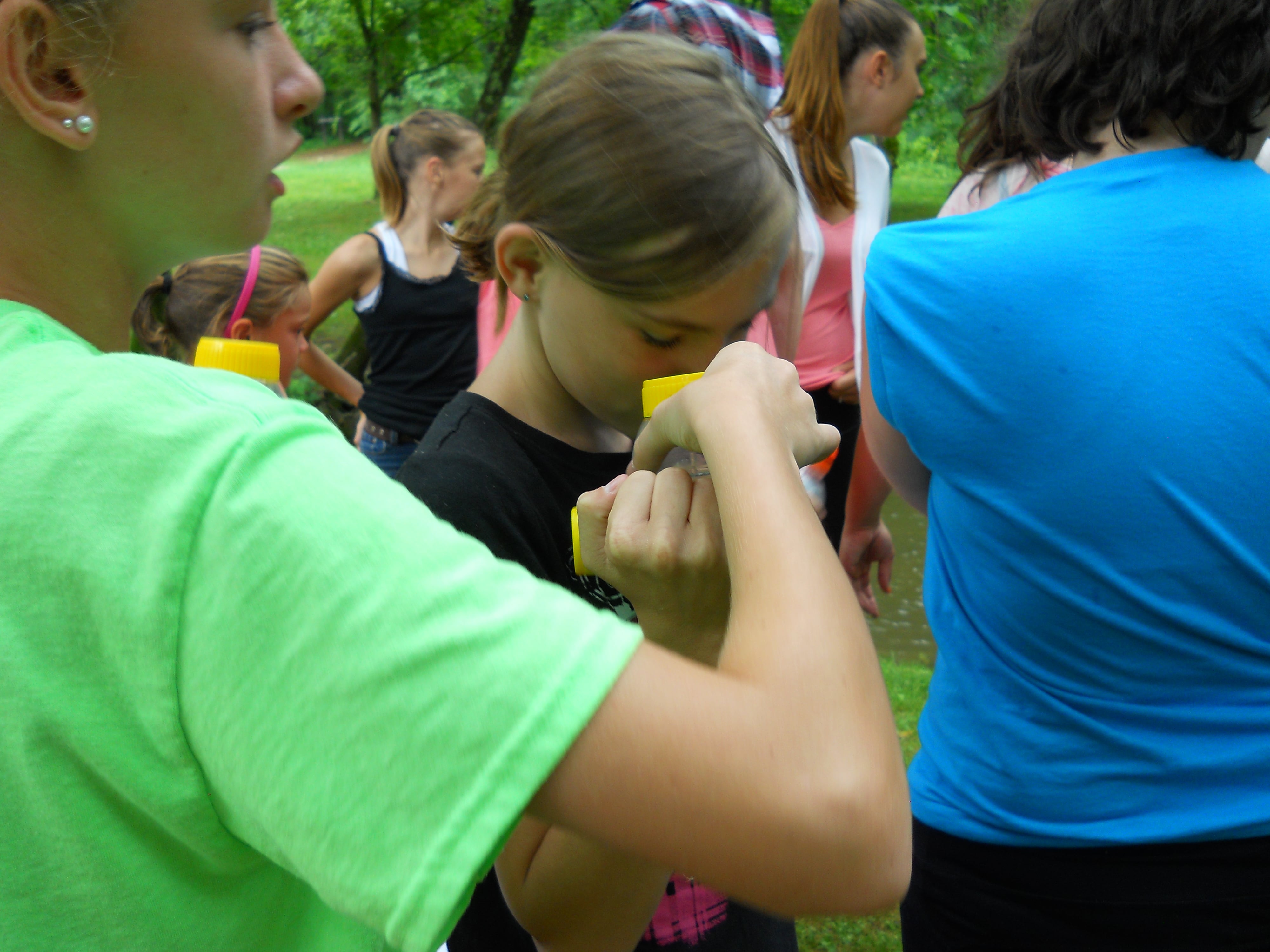 Next, the GYRLS ran tests on pH, Dissolved Oxygen, Nitrates, Phosphates, and Temperature learning the meaning of each of the different tests. They discovered that both nitrates and phosphates were present in the stream; most likely coming from run off from farm that use fertilizers up stream.