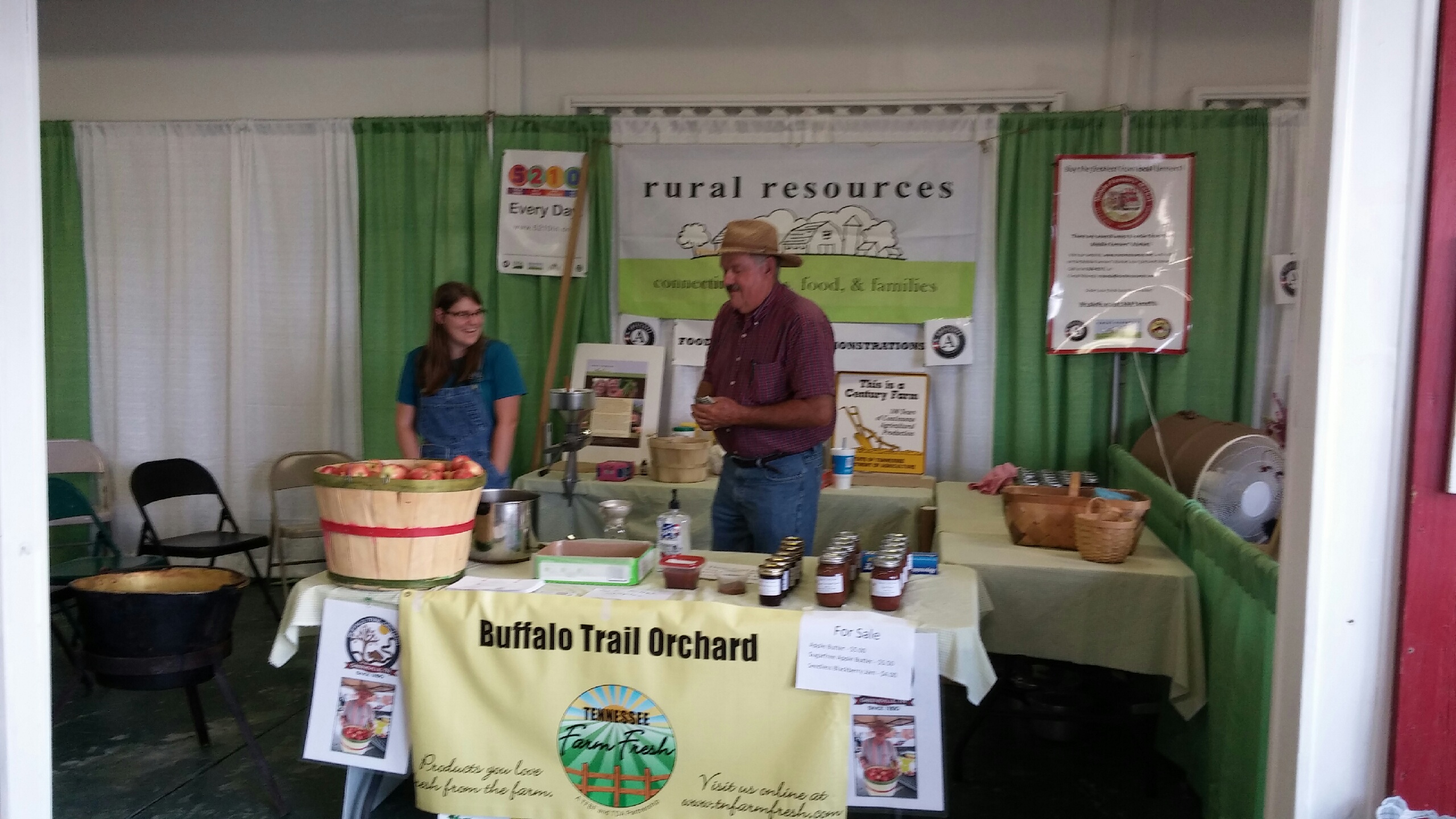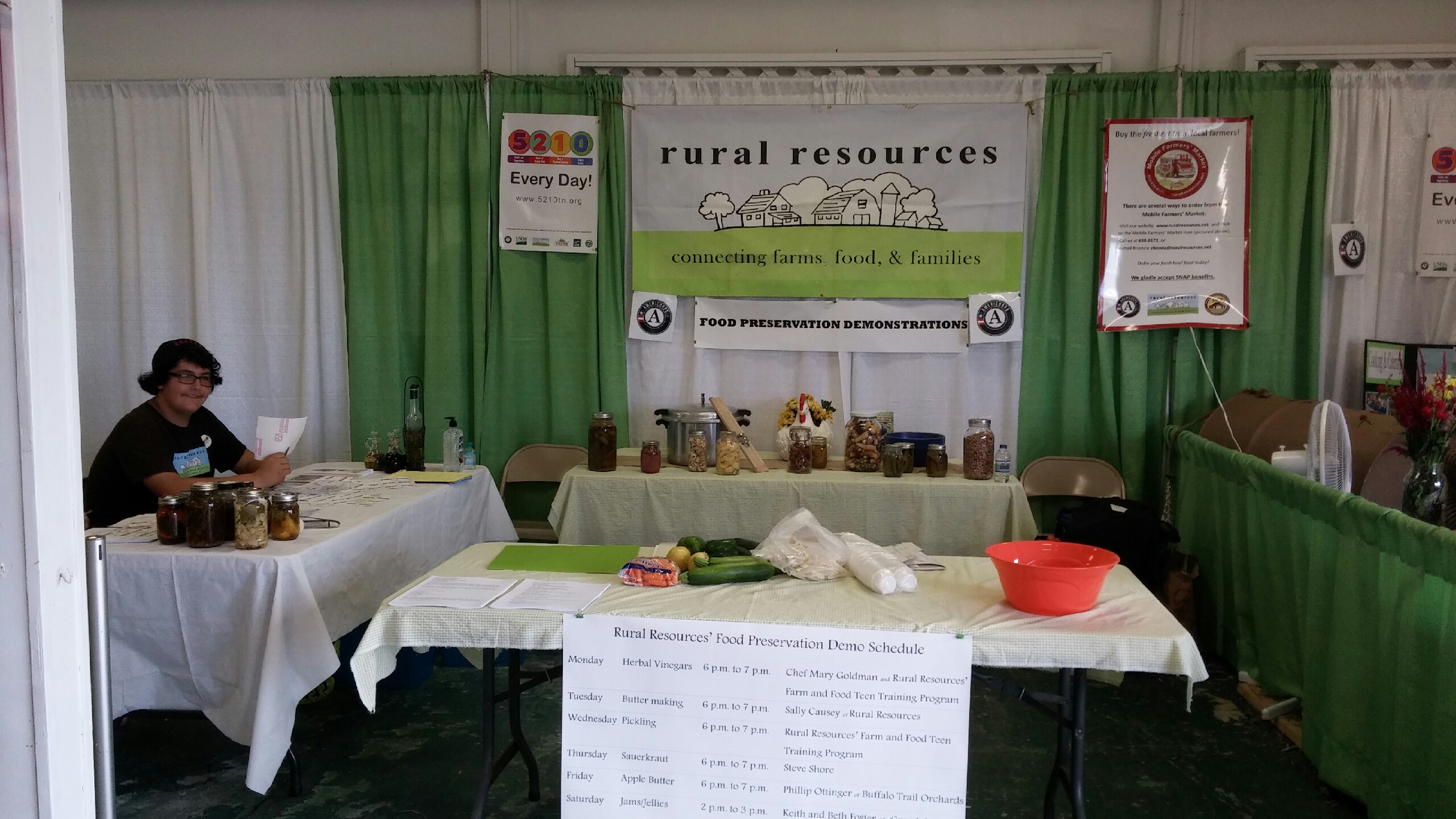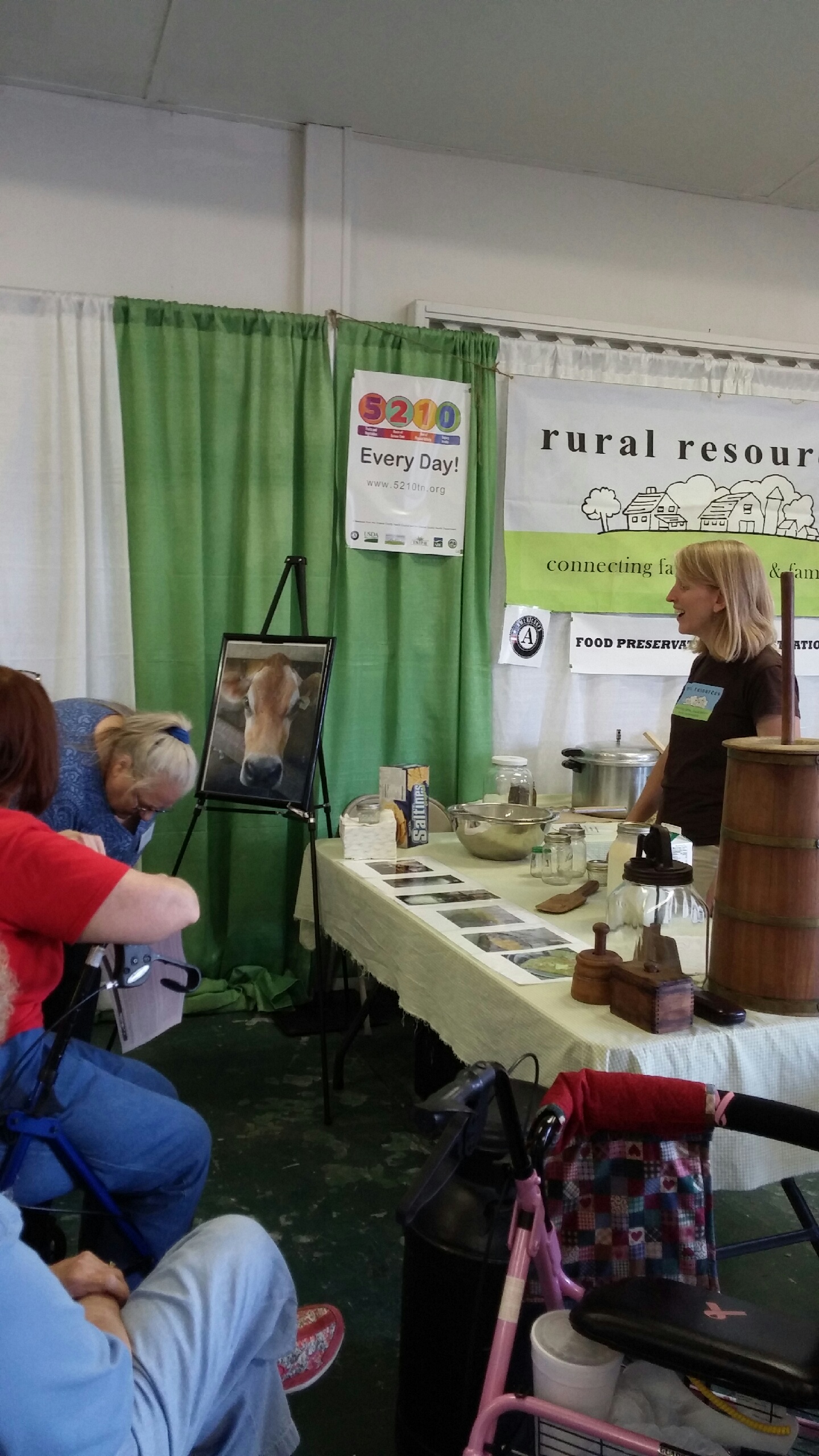 We also sponsored food preservation demonstrations during fair week. Monday we made some infused vinegar with one of our chefs and teens, Tuesday was butter making with our executive director Sally, Wednesday pickling with my mom and my cooking teens, Thursday sauerkraut with a Rural Resource volunteer, Friday apple butter making with a local grower, and Saturday jam making by a local artisan. The preservation demonstrations were a huge success, and they have asked us to come back next year and line up more!