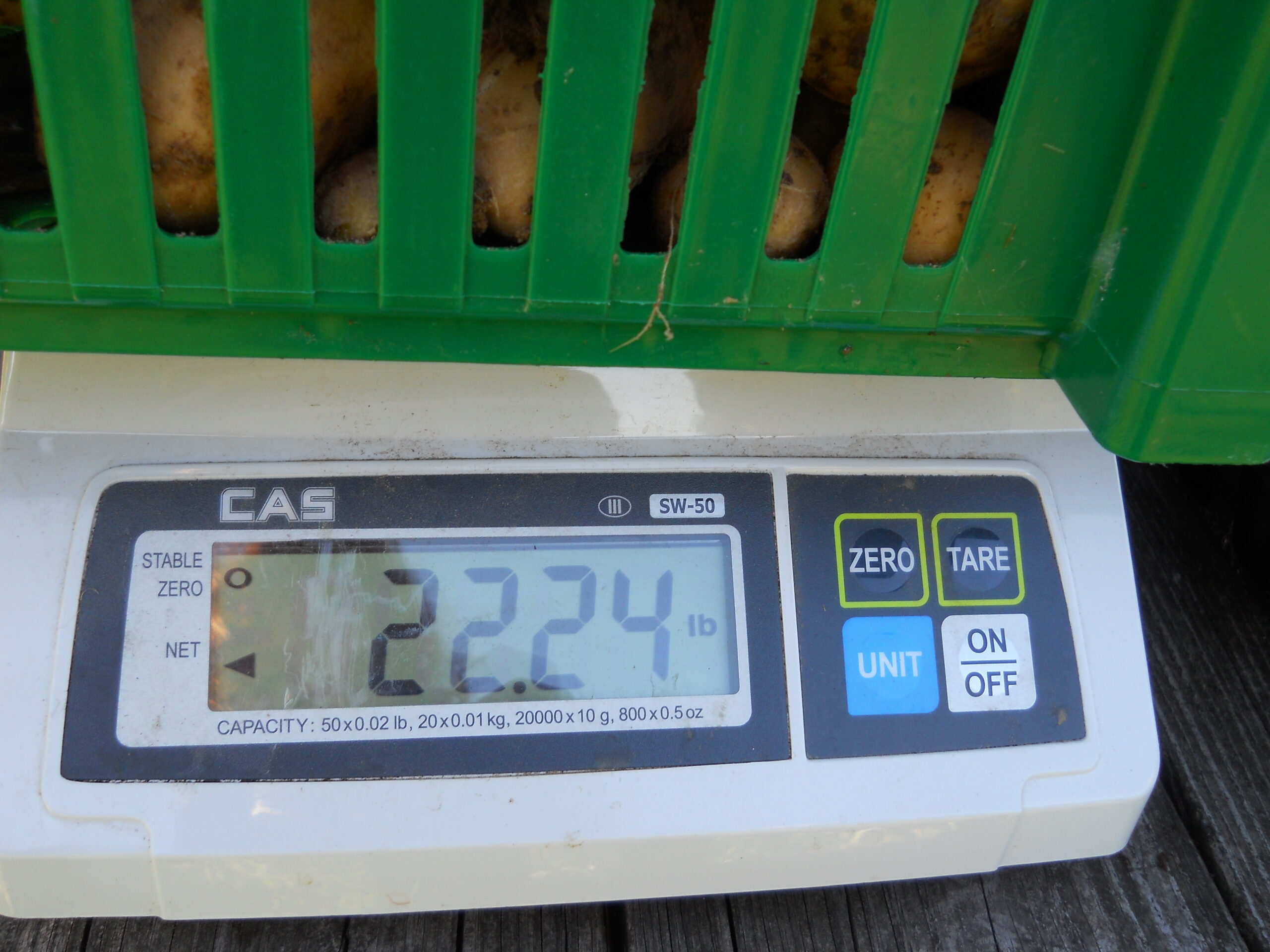 I was surprised by our harvest. This is a new garden, expanded this past spring from a smaller garden whose production record was weak. Our efforts to test and amend the soil paid off with an incredible harvest! In just 10’ of row space we harvested over 22 pounds of potatoes. Some nearly the size of my forearm!