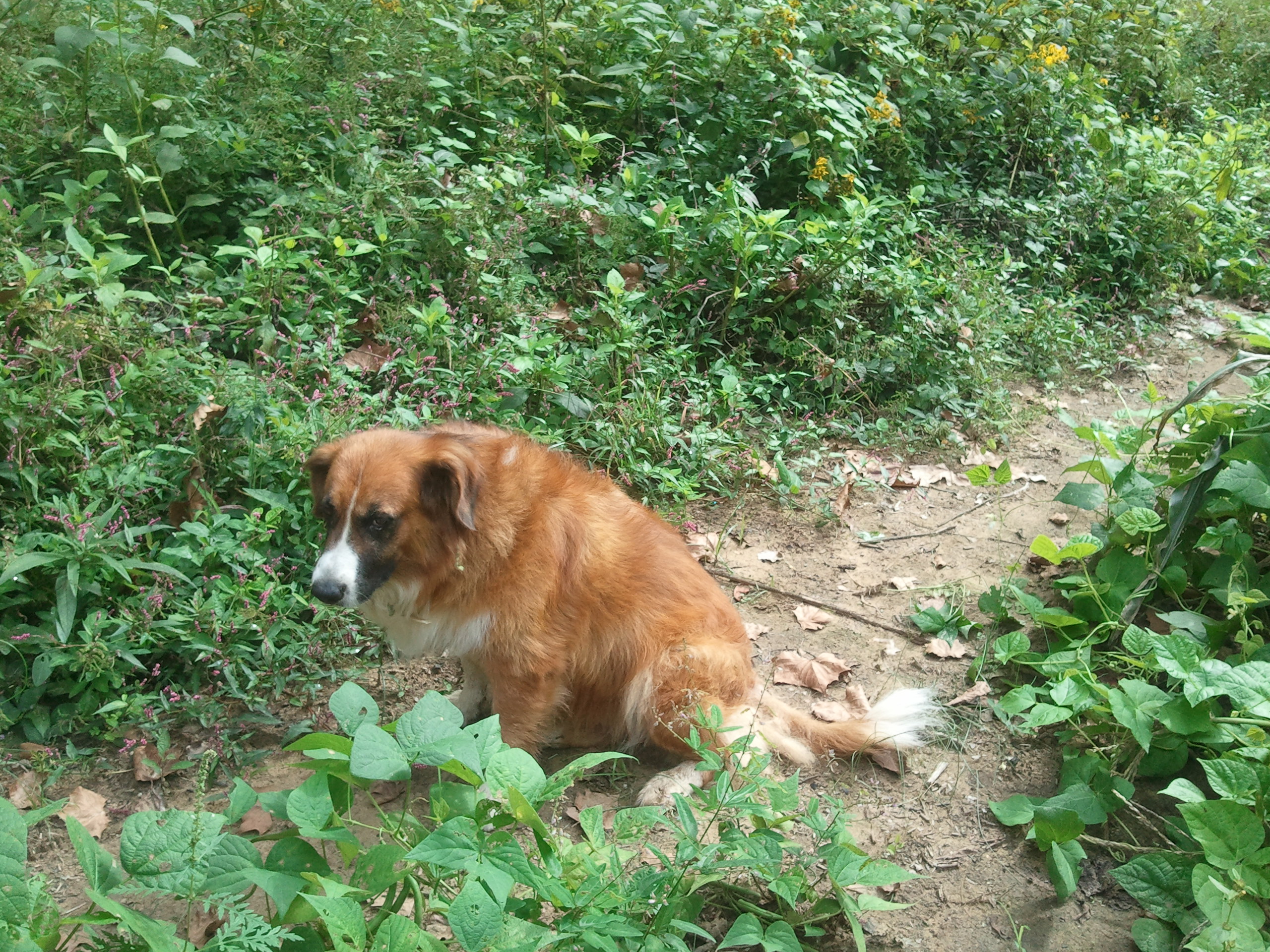 Of course deer are not the only higher mammals that can damage the garden. Raccoons are notorious, but I did not notice any such damage. Dogs, however, are another story all together. I have four large dogs who are completely devoted to me. When I am in the garden they are right there to make sure I am safe and to dig up any interesting good smells. They also like to dig a nice cool spot to relax in on a hot, humid day. Big Ugly has named me the “Big Ugly Dog Whisperer” because whenever I go for a walk all the dogs from all the houses around me come out to escort me on my journey. Sometimes there are as many as eleven large dogs with me. They consider it their civic duty to supervise my garden work. So—yes I did sustain a bit of dog damage. But not as much as you might suspect. The photo is my collie mix “Trixie” scratching her back in the cool sand.