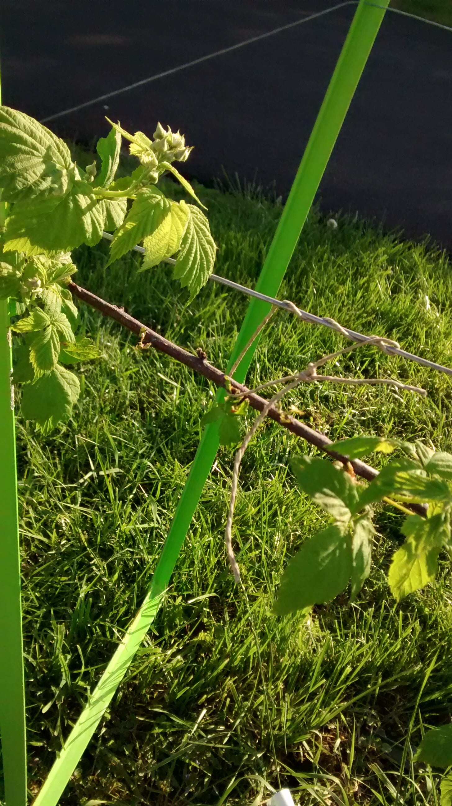 JJ then took time to tie each cane to the support wires that run approximately 2′ and 4.5′ in height.