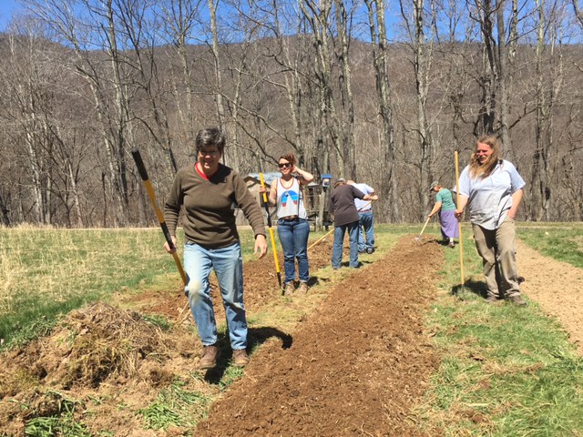 Since the last blog, we have been keeping very busy organizing all the moving parts that is High Rocks Grow Appalachia –from ordering seeds/plants, actually seeding and planting, tilling, and amending—our season is in full swing. Truck beds full of manure and compost have been tilled under and beds have been seeded or planted. We also started hundreds of tomatoes and peppers in our little hoop house for our participants and also to sell. All of these things require some organizing and clear communication which isn’t always easy, but we are making progress!