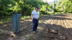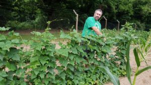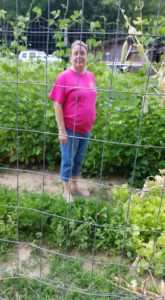 Cindy Hackworth comes from a long line of successful gardeners and she’s keeping up the family tradition. Cindy loves growing gourds and painting them to sell at the Farmers Market and various craft shows. She gets excited when she discovers new types of gourds to grow and gets them into the soil ASAP! To get to their garden you have to do some creek stomping and that’s pretty cool in my book. Her Dad, Buddy, is an inspiration to me with his wheel hoe and putting out over 600 sweet potato plants! Her Aunt’s garden is a huge show of lush greenery as well! It was an enjoyable morning playing in their garden and they even shared some “Dolly Parton” tomatoes with me! “The biggest red tomatoes I’ll ever see!”