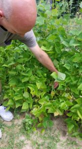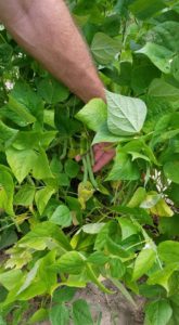 Glenna Robinson & Scotty Bradley are a gardening duo that are hard to keep up with! Today Glenna was “graveling” new potatoes without disturbing the roots of the plants, so the smaller potatoes could continue growing. I learn something new every time I visit them. Glenna’s Daddy taught her how to do that and she’s taught her kids how to do it too. She’s also becoming a pro at planting in succession for continual harvesting through to October and my mind is just reeling with the possibilities! Four successions of beans are in the works and she’ll replant several other veggies before the end of July.