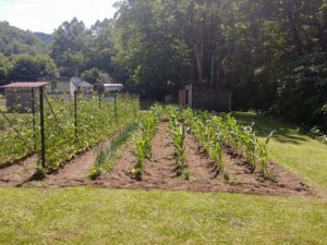 Theresa Ousley’s family garden is planted out and looking beautiful!! With the partnership and direction of her husband, Eric, and the help of her daughter Erica, and grandkids Brycen & Laken, it’s going to be a good gardening year! She loves to use simple, organic methods of pest & weed control with her hot pepper flakes (to deter the cats, raccoons, and deer), and layers of newspaper and grass clippings (to deter the weeds around her veggies). Lots of learning going on in this garden! Erica and the kids have even started their own section of garden with potatoes, beets, beans, peppers, and popcorn.