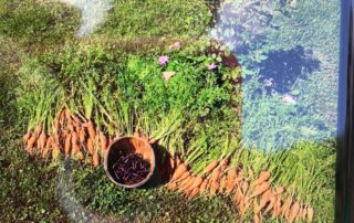 This family layers newspaper and seedless grass clippings to help prevent weeds in their garden. They compost their scraps underneath the newspaper to help the soil with nutrients. They have made a framed trellis that is slanted to harvest cucumbers easier. Their son and daughter loves the pumpkin patch. They have planted basil in small pots to move around the garden to help fight pests at the time of need. I believe I will be trying some of these techniques at the mission next year.