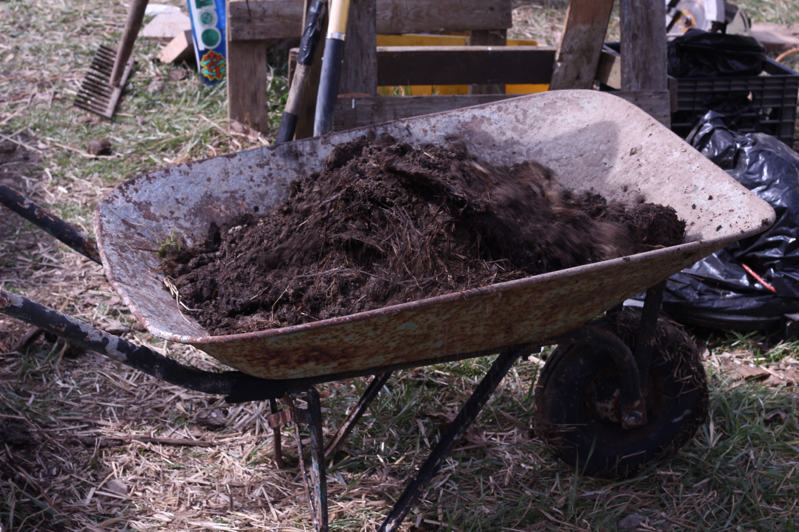 In addition to the apartment complex gardens, a teacher at the community homeschool co-op enlisted some help to build raised beds in the schoolyard. The intention of creating the space is to add more gardening to the curriculum. Additional beds have been created with the hope that families of the students will start their own garden. All the gardens mentioned have already added manure to the worked up beds that used 2 tine garden forks to break up the topsoil. There is also a cow sanctuary on the property where families are able to use the manure being produced for their gardens.