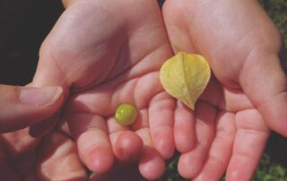 A volunteer plant, for anyone that is unfamiliar with this term, is a plant that the gardener didn’t plant herself but has resulted from the sowing of a plant from a dropped seed, sometimes from a bird, poop from an animal that has ingested it and then passed it in their manure, a fruit left to decompose, and so on. Some annual plants are very prone to re-seeding themselves year after year, such as with ground cherries, a favorite of my 2-year-old daughter because she loves picking little berries and eating them as she strolls around the yard. I have had two plants pop up this year on their own: one is in the raised bed where I planted them last year and it is about a foot tall and 2 feet wide. The other plant is hundreds of feet away, snuggly rooted up against one of our goat and cow shelters where lots of manure has been laid and it is every bit of four feet tall and five feet wide and absolutely covered in the little paper lanterns that hold the sweet pineapple flavored fruit my daughter loves to find.