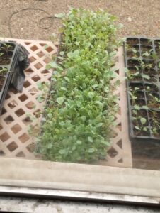 Potatoes and early spring crops have been planted, and some who started seeds indoors now have peas 12” high. Tomatoes, peppers, and broccoli plants have been started by one of our gardeners to be handed out in early May, and we are expecting sweet potato slips any day.