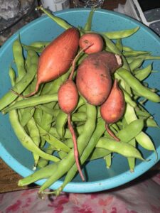 One item this year has really surprised everyone: half-runner beans did not do very well at all, but bush and pole beans did. Potatoes have also done very well, as have other crops. We really cannot complain about the gardens. Most of them have done well, and there has been an awful lot of canning, freezing, drying, and sharing with neighbors, the elderly, and families. Not to mention storing the potatoes in a dark, cool, dry, well ventilated area. When I was growing up, that meant in a basket in a corner of the root cellar. And soon, sweet potatoes will be joining regular potatoes to take families through the winter.